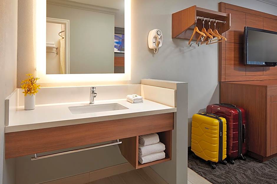 Offering free WiFi, this spacious room has a mini-fridge, a 40-inch HDTV, a telephone, a table with chairs and a hairdryer.